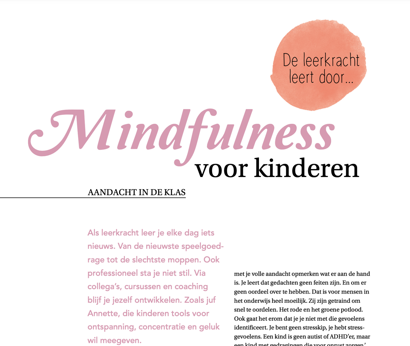 BekijkenLees hier het artikel over mindfulness in de klas in het blad ‘juf en meester’.